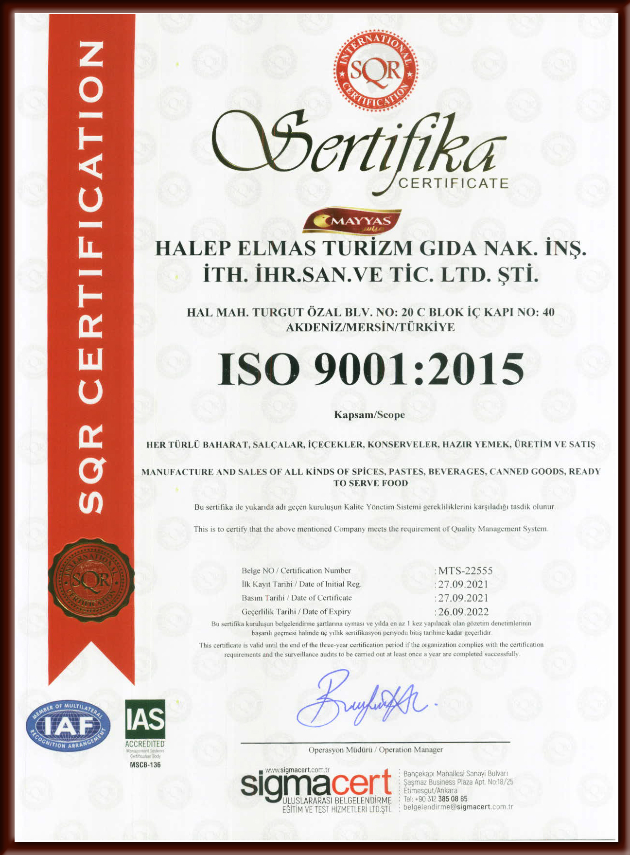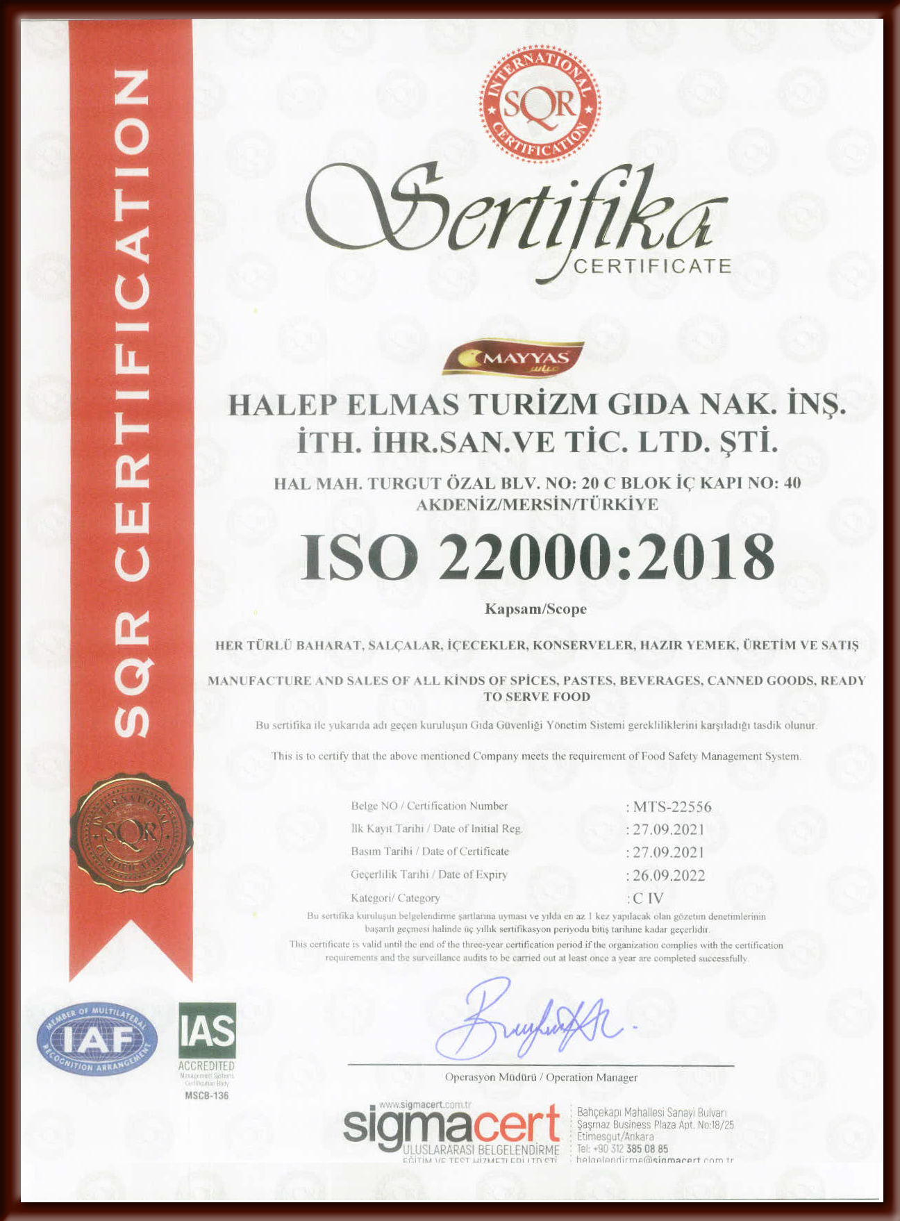 يتم إنتاج مجموعتنا المتنوعة من التوابل والأعشاب والمعلبات والمخللات والعصائر وصلصات الطعام في مصانعنا في تركيا ومصر، لتلبية الاحتياجات المتنوعة لعملائنا بمكونات عالية الجودة وطعم مميز.